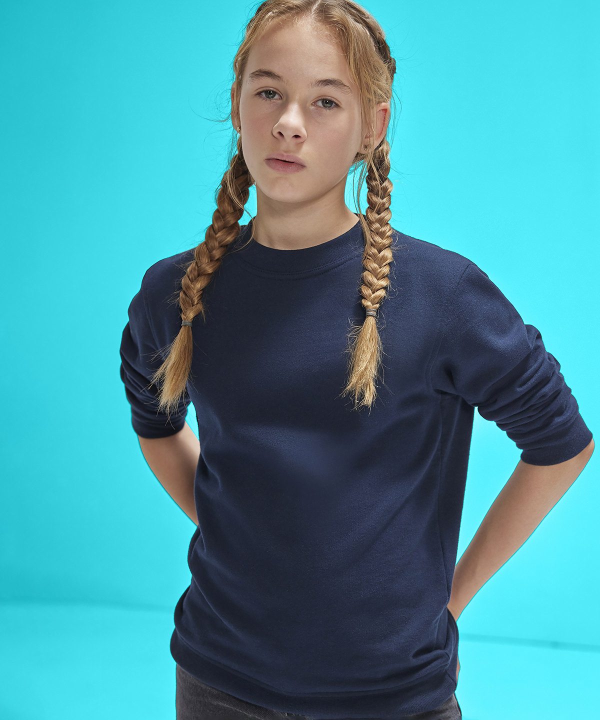 Meet the unmatched modern classic for kids. This unisex crew neck sweatshirt, for boys and girls, from kids to teens, with a comfortable dropped shoulder for ease of movement, will withstand any wear and tear! It’s made from soft, durable 100% cotton face fabric for excellent printability and is neck-label-free for easy customisation.
